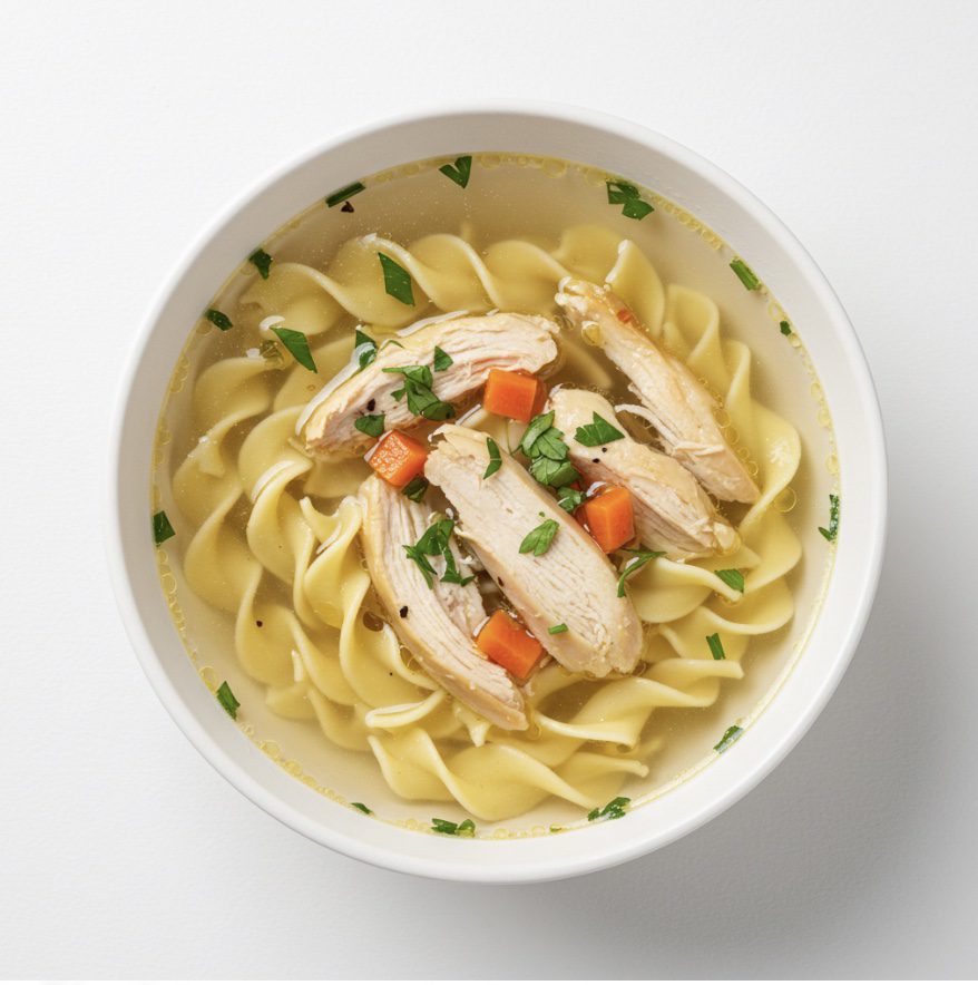 This knock-off homemade chicken noodle soup takes 30 mins or less including prep time: