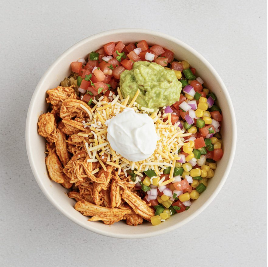 This is another meal prep favorite of mine. Use whatever burrito bowl ingredients that you prefer (salsa, guac, lettuce, rice, cheese, Greek yogurt, etc), top with shredded chicken and you are done!